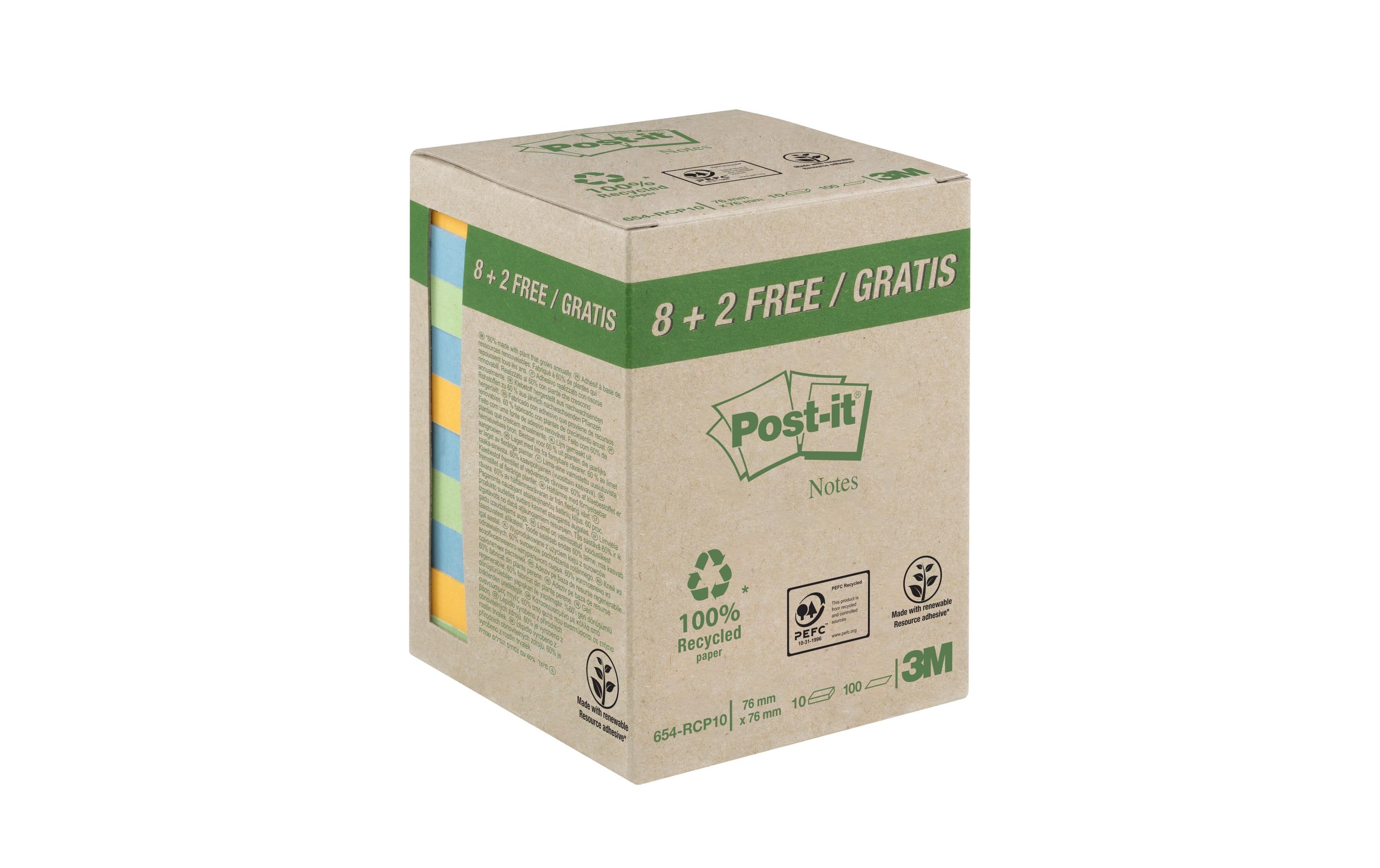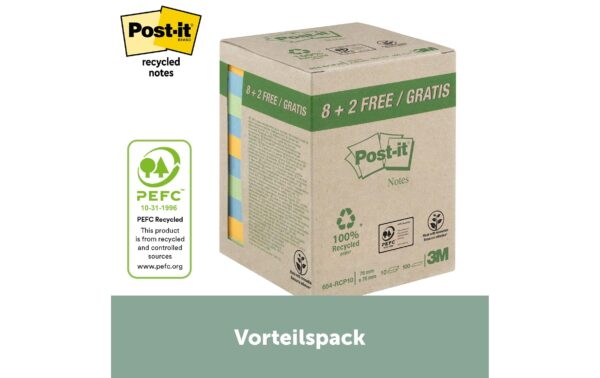 3M Post-it Recycling Notes diverse Farben 10 Block à 100 Blatt, 76x76mm