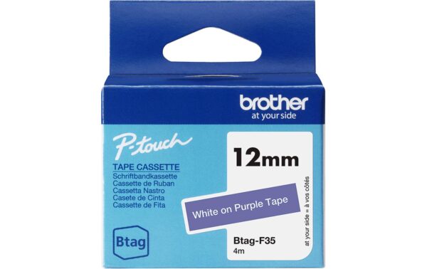 Brother BTAG-F35 Weiss auf Lila Länge: 4 m, Schriftfarbe: Weiss, Material: Papier, Bandfarbe: Lila, Materialeigenschaften: Nicht laminiert, Breite: 12 mm