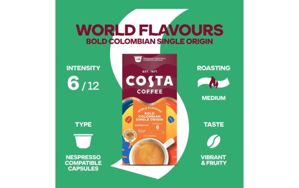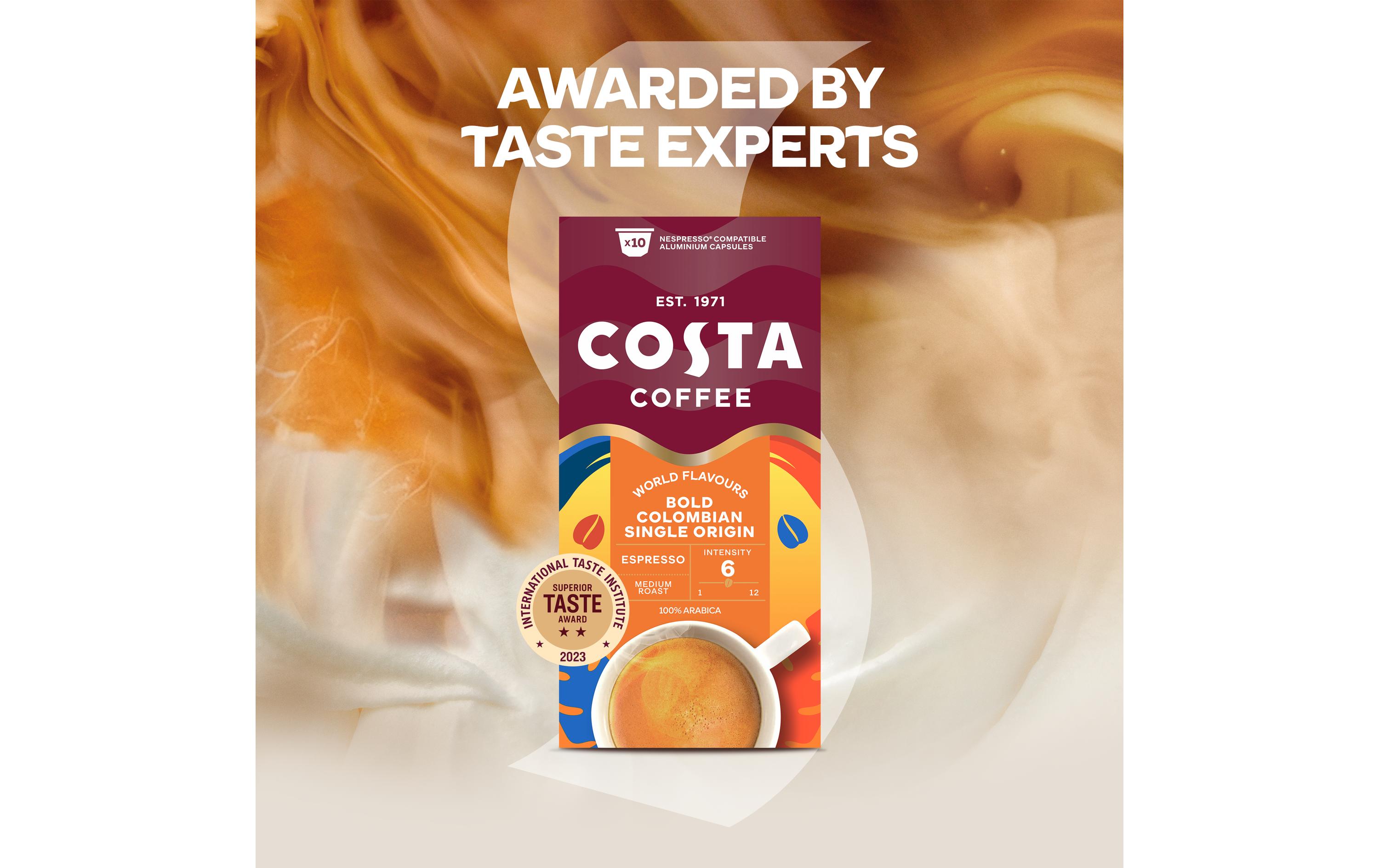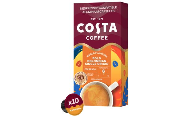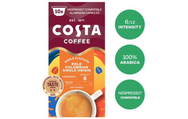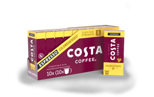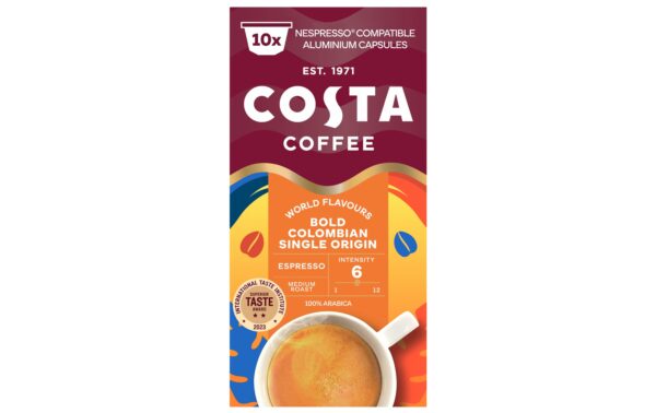 Costa Coffee Kaffeekapseln Colombian Espresso 100 Stück Entkoffeiniert: Nein, Produktionsland: Niederlande, Packungsgrösse: 100 Stück, Geschmacksrichtung: Keine, Getränkeart: Espresso, Milchkaffee, Café Crème, Kaffeeart: Nespresso Kapseln