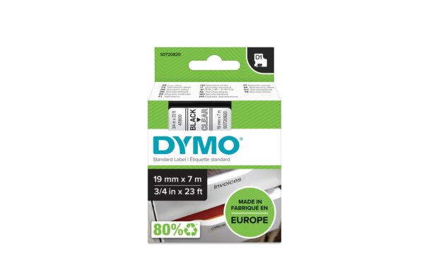 Dymo Schriftband D1, 19mm x 7m, Band:transp Schrift: schwarz – für alle LabelManager