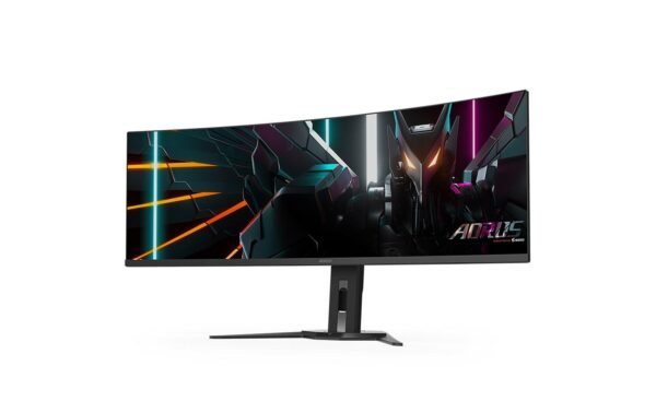 Gigabyte Monitor Aorus CO49DQ Bildschirmdiagonale: 49 , Auflösung: 5120 x 1440, Video-Anschlüsse: HDMI, DisplayPort, Anwendungsbereich: Gaming, Ergonomie: Schwenkbar, Höhenverstellbar, Neigbar, Curved: Ja