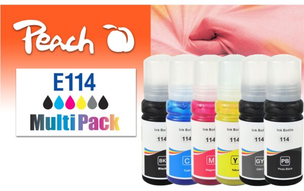 Peach Tinte Epson CISS 114 MultiPack C/M/Y/G/FBK/BK Druckleistung Seiten: 6000 ×, 7500 ×, Toner/Tinte Farbe: Black, Yellow, Magenta, Cyan, Photo Black, Grey, Originalprodukt: Nein, Rainbow Kit: Ja