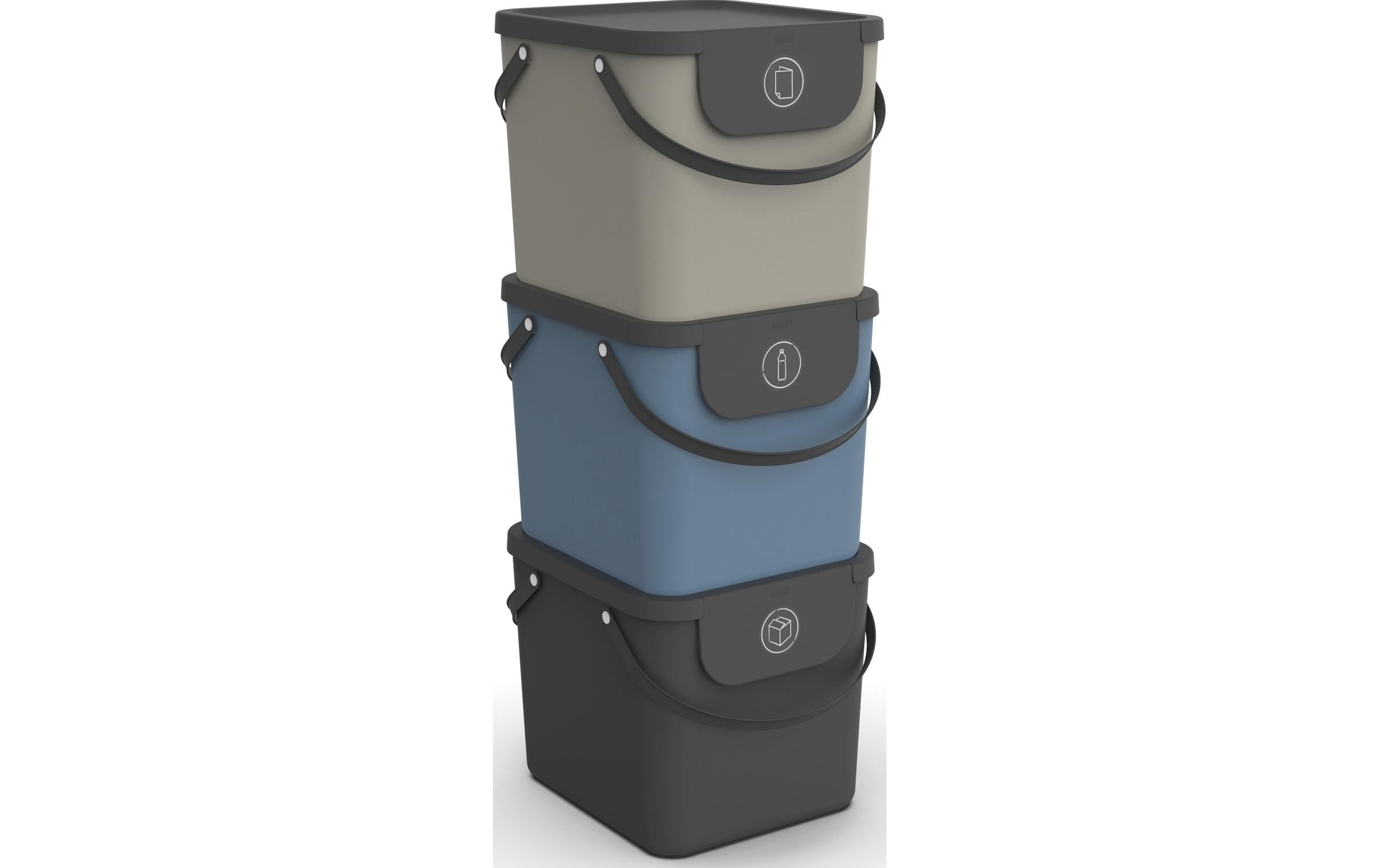 Rotho Recyclingbehälter Albula 40 l, Blau/Grau/Schwarz Material: Recycling Kunststoff, Fassungsvermögen: 40 l, Anzahl Behälter: 3, Detailfarbe: Grau, Blau, Schwarz, Form: Eckig