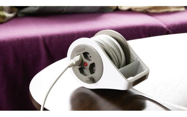 Steffen Kunststoff Kabelrolle mit Griff 4xT13, weiss/grau, 7m Kabel