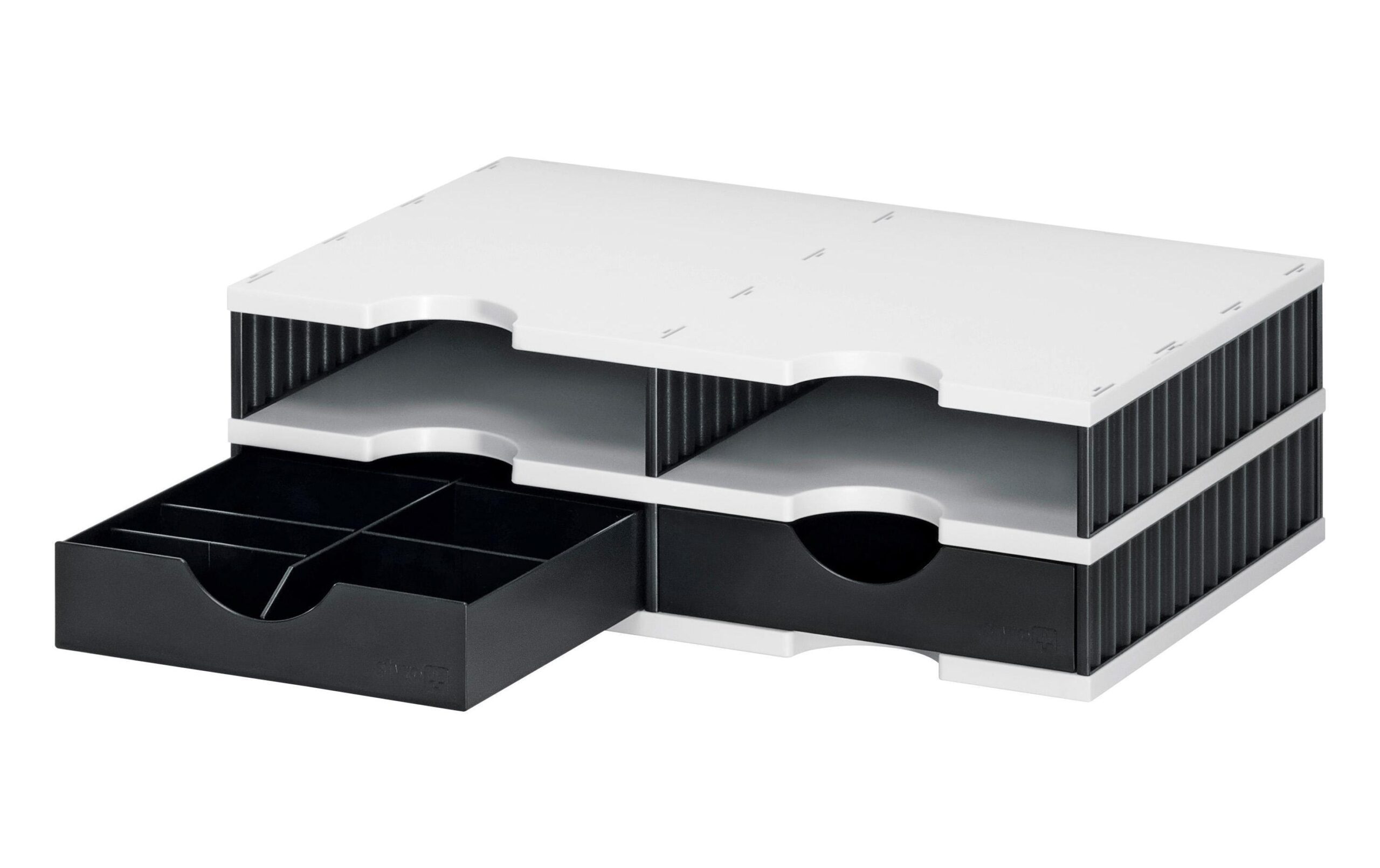 Styrodoc duo SET: 4 Fächer schwarz / grau 2 Schubladen schwarz mit Stegen