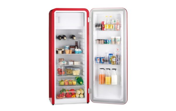 Trisa Kühlschrank Frescolino Classic Rot, Rechts Energieeffizienzklasse EnEV 2020: E, Bauart: Freistehend, Einbaunormen: Keine, Nutzinhalt Kühlen: 260 l, Nutzinhalt Gefrieren: 21 l, Breite: 60 cm